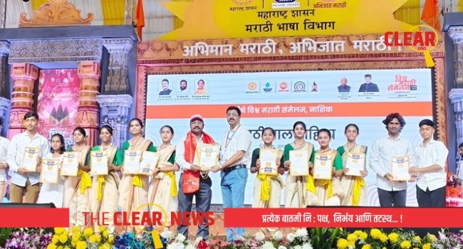 जळगाव प्रतिनिधी - महाराष्ट्र शासनाच्या मराठी भाषा विभागातर्फे चौथे विश्व मराठी संमेलन नाशिक येथे आयोजित करण्यात आले होते. या संमेलनाला...