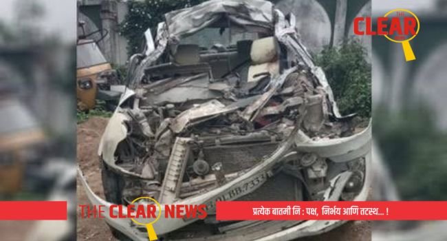 दौलताबाद (वृत्तसंस्था) धुळे-सोलापूर महामार्गावर फतियाबाद गावाजवळ मारुती स्विफ्ट डिझायर कारने अज्ञात वाहनाला मागून धडक दिल्याने तीन जण ठार, तर दोघे गंभीर जखमी झाले. हा अपघात शनिवार, ६ जुलै रोजी पहाटे ५.३० वाजेच्या सुमारास घडला. अपघात इतका भीषण होता की, कारचा पुढील भाग पूर्णपणे तुटून मागे गेला. मृतकांमध्ये राजू आसाराम उचित (६०), अलकाबाई राजू उचित (५५), अर्जुन राजू उचित (२५, रा. लायननगर, वाळुज, ता. गंगापूर, जि. छत्रपती संभाजीनगर) यांचा समावेश आहे.