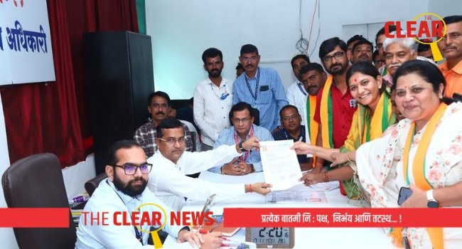 चाळीसगाव (प्रतिनिधी) भारतीय जनता पक्षाच्या वतीने नगराध्यक्ष पदाची अधिकृत उमेदवारी सौ. प्रतिभा मंगेश चव्हाण यांना जाहीर करण्यात आल्यानंतर आज भाजपच्या वतीने भव्य जाहीर सभा घेऊन जोरदार शक्तिप्रदर्शन करण्यात आले. यावेळी नगराध्यक्ष पदासाठी प्रतिभा चव्हाण यांच्यासह इतर ३६ उमेदवारांचे नगरसेवक पदासाठीचे अर्ज दाखल करण्यात आले.