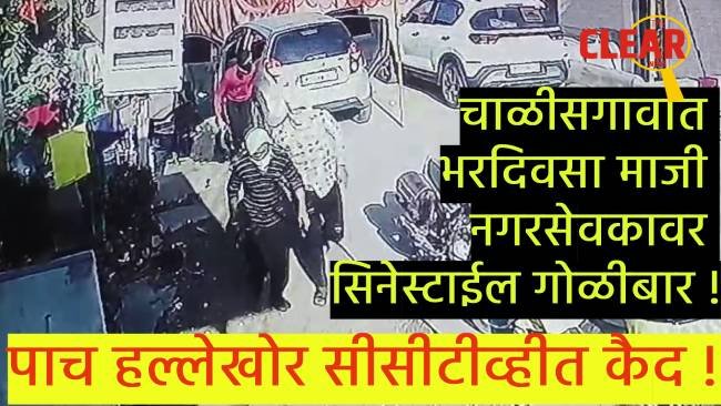 चाळीसगाव पालिकेचे माजी नगरसेवक बाळू मोरे हे दुपारी पावणेपाच वाजेच्या सुमारास त्यांच्या ऑफिसमध्ये बसलेले होते. याचवेळी त्यांच्यावर अज्ञात हल्लेखोरांनी गोळीबार केला. दरम्यान, घटनेचे एक सीसीटीव्ही फुटेज समोर आले आहे. या व्हिडीओमध्ये एका कारमधून हल्लेखोर तोंडाला रुमाल बांधून कारमधून उतरताना दिसत आहेत. धक्कादायक म्हणजे प्रत्येकाच्या हातात हातात गावठी कट्टा होता. सुरुवातीला तीन हल्लेखोर ऑफिसमध्ये शिरतात. त्यानंतर दोघं पळत-पळत मागे जातात.