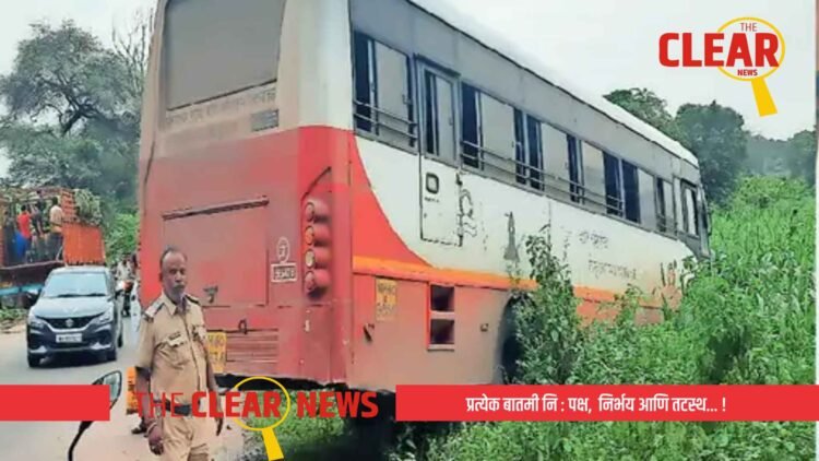 जळगाव आगाराची रावेर-जळगाव ही (एमएच ४o एन ९८३४) या क्रमांकाची बस मंगळवारी दुपारी ३.१५ वाजता रावेर येथून जळगावकडे रवाना झाली. त्याचवेळी सावद्याकडून येणारा (डीडी ०३ एम ९४३२) या क्रमांकाचा ट्रक कंटेनरने बसला धडक दिली. अपघातानंतर बस शेतात घुसली. यामुळे बसमधील दोन प्रवासी खिडकीच्या तुटलेल्या काचा लागल्याने जखमी झाले. बस अपघाताचे वृत्त कळताच वाहतूक पोलिस भागवत धांडे यांनी घटनास्थळी धाव घेत जखमींना रुग्णालयात पाठवून वाहतूकही सुरळीत केली. याप्रकरणी रावेर पाेलिसांत अपघाताची नाेंद झाली आहे.
