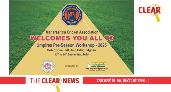 जळगाव दि. १२ प्रतिनिधी – महाराष्ट्र क्रिकेट असोसिएशनतर्फे व जळगाव जिल्हा क्रिकेट असोशिएशन आयोजित क्रिकेट पंचांची कार्यशाळा दि. १३ ते १४ सप्टेंबर २०२५ दरम्यान होणार आहे. जैन हिल्स येथील सुबीर बोस हॉलमध्ये ही कार्यशाळा घेण्यात येईल. जैन इरिगेशन सिस्टीम्स लि. यांच्या सहकार्यातून होत असलेल्या कार्यशाळेला भारतीय क्रिकेट नियामक मंडळाचे पंच संदीप चव्हाण, संदीप गांगुर्डे, मंगेश नार्वेकर मार्गदर्शन करतील.
