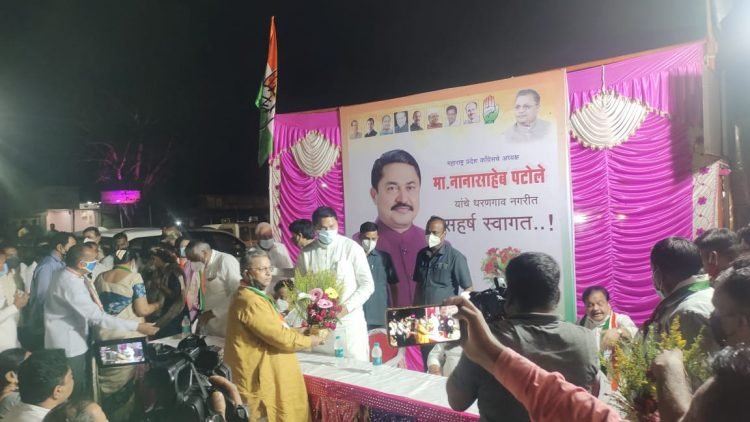 धरणगाव (प्रतिनिधी) महाराष्ट्र प्रदेश काँग्रेसचे अध्यक्ष नाना पटोले यांनी संवाद यात्रानिमित्त धरणगाव शहराला भेट दिली. यावेळेस धरणगाव तालुका काँग्रेसकडून नाना पटोलेंचे जंगी स्वागत करण्यात आले.