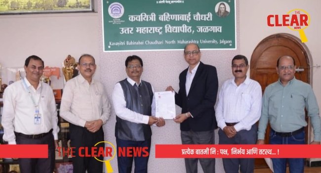 जळगाव, प्रतिनिधी – कवयित्री बहिणाबाई चौधरी उत्तर महाराष्ट्र विद्यापिठातर्फे जळगाव येथील ज्येष्ठ पत्रकार दिलीप मनोरमा केशवलाल तिवारी यांना पीएच. डी. पदवी (डॉक्टर ऑफ फिलॉसॉफी अर्थात विद्यावाचस्पती) प्रदान करण्याचे पत्र (नोटीफिकेशन) आज प्रदान करण्यात आले. विद्यापिठाचे कुलगुरू प्रा. विजय माहेश्वरी यांच्या हस्ते श्री. तिवारी यांना याबाबत अधिकृत पत्र प्रदान करण्यात आले. यावेळी प्रकुलगुरू प्रा. एस. टी. इंगळे, व्यवस्थापन परिषद सदस्य राजेंद्र नन्नवरे, मार्गदर्शक प्रा. डाॅ. सुधीर भटकर, संशोधन विभागाचे सहायक कुलसचिव प्रविण चंदनकर, डाॅ. सोमनाथ वडनेरे, सुभाष तळेले उपस्थित होते.