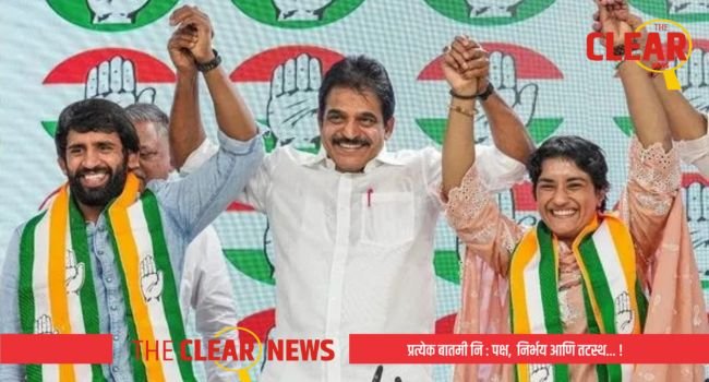 हरयाणा विधानसभा निवडणुकीदरम्यान देशाची आघाडीची कुस्तीपटू विनेश फोगाट व बजरंग पुनिया यांनी शुक्रवारी काँग्रेस पक्षात प्रवेश केला. हरयाणा निवडणुकीत हे दोघे कोणत्या मतदारसंघातून नशीब आजमावणार आहेत ? – याचा फैसला पक्षश्रेष्ठी उशिराने करणार असल्याचे काँग्रेसच्या सूत्रांनी सांगितले. तत्पूर्वीच विनेशने रेल्वेतील नोकरीचा राजीनामा दिला आहे.