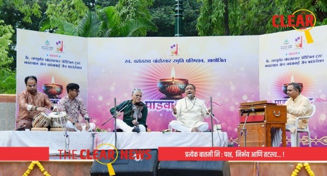जळगाव (प्रतिनिधी) स्व. वसंतराव चांदोरकर स्मृती प्रतिष्ठान आयोजित २४ व्या “पाडवा पहाट” या प्रातःकालीन मैफलीचे आयोजन महात्मा गांधी उद्यानात पहाटे ६ वाजता करण्यात आले होते. यामध्ये प्रख्यात राष्ट्रीय कीर्तनकार, शास्त्रीय तसेच नाट्यसंगीत गायक व नट डॉ. चारुदत्त आफळे यांच्या नाट्यसंगीत व अभंग वाणी या मैफिलीचे आयोजन करण्यात आले होते.