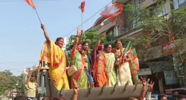 चार राज्यातील विजयाचा जल्लोष जळगावात भाजप कार्यकर्त्यांकडून गुलाल उधळून ढोल ताशा वाजवत केला. भारतीय जनता पार्टीच्या जिल्हा कार्यालयाबाहेर विजयोत्सव साजरा केला जात आहे. महिला कार्यकर्त्यांनी देखील जल्लोष केला.