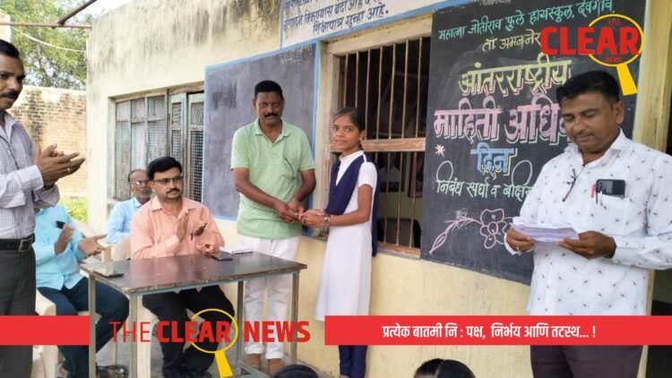अमळनेर (प्रतिनिधी) देवगाव देवळी येथील महात्मा ज्योतिराव फुले हायस्कूलमध्ये 28 सप्टेंबर आंतरराष्ट्रीय माहिती अधिकार दिन निमित्ताने निबंध स्पर्धेचे आयोजन करण्यात आले होते.