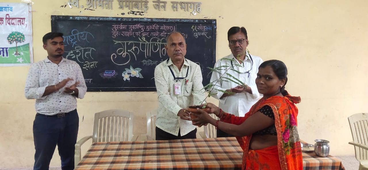 याप्रसंगी आयोजित कार्यक्रमाच्या अध्यक्षस्थानी विद्यालयाचे मुख्याध्यापक डी.एस. पाटील होते. तर प्रमुख पाहुणे म्हणून पर्यवेक्षक डी.बी. सोनवणे उपस्थित होते. प्रारंभी मुख्याध्यापक डी.एस. पाटील यांच्याहस्ते महर्षी व्यासमुनी व माता सरस्वती यांच्या प्रतिमेस माल्यार्पपण करण्यात आले. उपस्थित माता-पालक यांचे प्रातिनिधीक स्वरुपात विद्यार्थ्यांनी गुरुपौर्णिमेनिमित्त पूजन करुन औक्षण केले. याप्रसंगी भावनिक वातावरण निर्माण झाले होते. त्याचबरोबर हरितसेनेकडून उपस्थित माता-पालकांना रोपे देवून मुख्याध्यापकांनी त्यांचे स्वागत केले. प्रास्ताविक एम.ए. वाणी यांनी केले. मुख्याध्यापकांनी गुरुपौर्णिमेचे महत्व विषद केले. तसेच डीआयडी लिटील मास्टर सागर वर्पे या विद्यार्थ्याची कल्याणी काकडे, दिशा फुलमाळी, साक्षी गवळे यांनी मुलाखत घेतली. तसेच विद्यार्थ्यांनी आपले प्रश्न विचारुन शंकांचे समाधान केले. कार्यक्रमाचे सूत्रसंचालन समिधा सोवनी यांनी केले. तर आभार एस.जी. चौधरी यांनी मानले. यशस्वीतेसाठी ऋषिकेश पाटील, विष्णु साबळे यांचे सहकार्य लाभले. कार्यक्रमास विद्यालयातील सर्व विद्यार्थी, शिक्षक व शिक्षकेत्तर कर्मचारी उपस्थित होते.