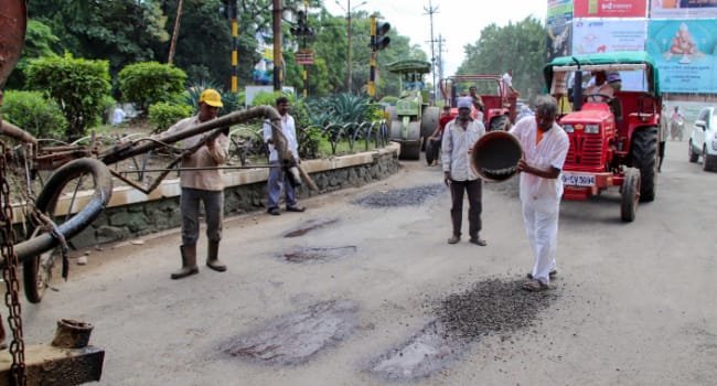 शहरातील मुख्य रस्त्यांसह विविध उपनगरांतील तसेच कॉलन्यांतील अंतर्गत रस्त्यांवर गेल्या काही दिवसांपासून मोठमोठे खड्डे पडलेले आहेत. त्यात पावसाळा असल्याने पादचार्यांसह नागरिक व वाहन चालकांना मोठ्या प्रमाणात त्रास सहन करावा लागत आहे. या पार्श्वभूमीवर जळगावकर नागरिकांकडून मोठ्या प्रमाणात महापालिकेसह महापौर, उपमहापौरांकडे तक्रारी येऊ लागल्या होत्या. त्यामुळे किमान शहरातील मुख्य रस्त्यांवरील खड्डे बुजविण्याला तरी प्राधान्य देऊन त्वरित नागरिकांना दिलासा द्यावा, यासंदर्भात महापौर जयश्री सुनिल महाजन व उपमहापौर कुलभूषण पाटील यांनी सतत महापालिका आयुक्तांसह अधिकार्यांसमवेत बैठका घेतल्या व पाठपुरावा सुरू ठेवला. त्यानंतर महापालिका प्रशासनाने शहरातील किमान मुख्य रस्त्यांवरील त्यात डांबरी व काँक्रीटच्या रस्त्यांवरील खड्डे बुजविण्याचा विषय गंभीरतेने घेऊन शहरातील मुख्य रस्त्यांवरील खड्डे बुजविण्याच्या प्रक्रियेस आठवडाभरापासून सुरूवात केली. यात सातत्याने मक्तेदारांकडून केल्या जाणार्या कामांसंदर्भातील नागरिकांची ओरड लक्षात घेऊन संबंधित रस्त्यांवरील खड्डे बुजविण्याच्या कामासाठी महापालिका प्रशासनाने स्वतःचीच संपूर्ण यंत्रणा रस्त्यावर उतरविली आहे.