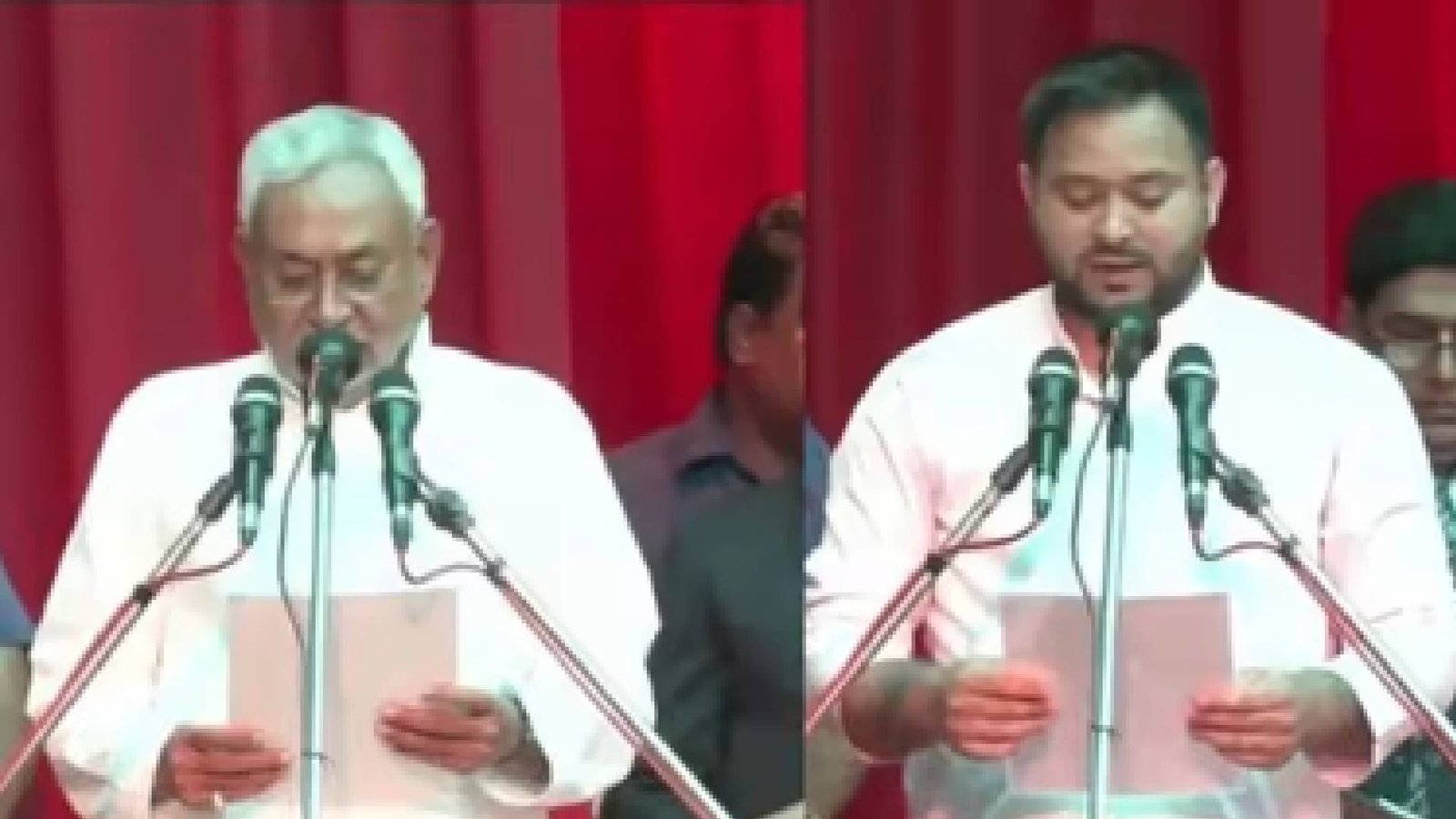 नितीशकुमार आठव्यांदा बिहारचे मुख्यमंत्री बनले आहेत. नितीश कुमार यांनी महाआघाडीचे नेते म्हणून बिहारच्या मुख्यमंत्रीपदाची शपथ घेतली. राज्यपाल फागू चौहान यांनी नितीश कुमार यांना शपथ दिली. यासोबतच तेजस्वी यादव यांनी बिहारच्या उपमुख्यमंत्रीपदाचीही शपथ घेतली आहे. तेजस्वी यादव दुसऱ्यांदा बिहारचे उपमुख्यमंत्री बनले आहेत. नितीश कुमार यांनी तेजस्वी यादव यांना मिठी मारून आशीर्वाद दिला. नितीश कुमार म्हणाले की, निवडणुकीपासून भाजप आपल्याशी काय वागत आहे, याकडे सर्वांचे लक्ष लागले होते. गेल्या दोन महिन्यांपासून परिस्थिती बिकट झाली होती. तसेच भाजपनं जेडीयू कमकुवत करण्याचा प्रयत्न केला, असा आरोप करत नितीश कुमार यांनी सरकारमधून बाहेर पडण्याचा निर्णय घेतला. त्यामुळे महाराष्ट्रात शिवसेनेत फूट पाडून सत्ता मिळवणाऱ्या भाजपला बिहारमधली सत्ता मात्र गमवावी लागली आहे. दरम्यान, शपथविधी सोहळ्यासाठी लालू प्रसाद यादव यांचं संपूर्ण कुटुंब राजभवनात उपस्थित होतं. त्यात राबडी देवी, तेज प्रताप यादव आणि तेजस्वी यादव यांच्या पत्नी राहेल यादव यांचा समावेश आहे.