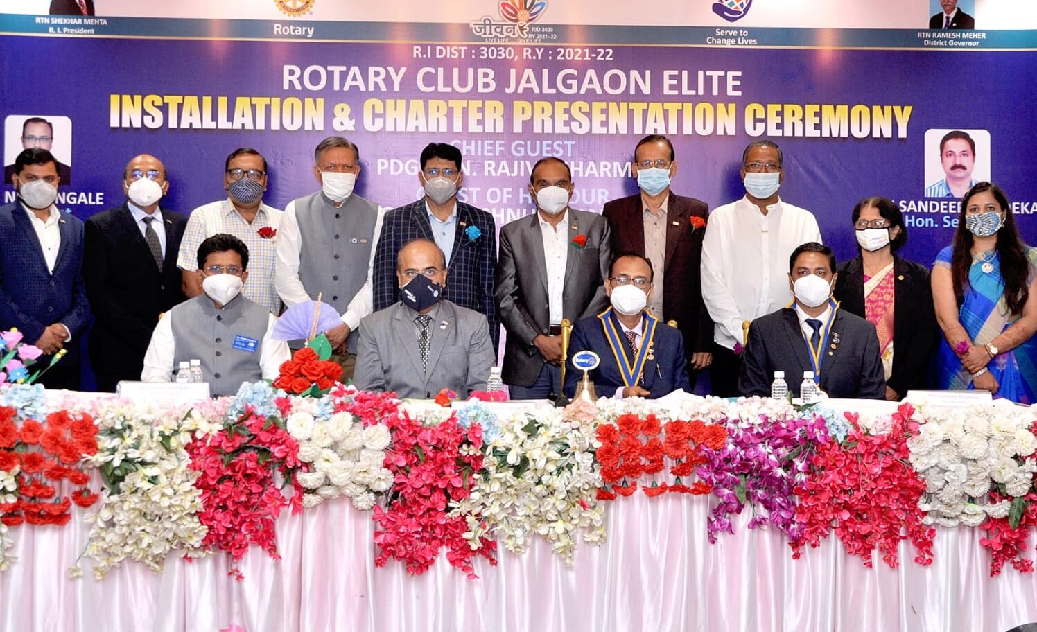 जळगाव (प्रतिनिधी) रोटरी परिवारात यंदा रोटरी क्लब जळगाव ईलाईटचा समावेश झाला असून या क्लबचा पदग्रहण सोहळा पीडीजी राजीव शर्मा यांच्या मुख्य उपस्थितीत शुक्रवारी दुपारी हॉटेल प्रेसिडेंट कॉटेजमध्ये उत्साहात झाला. शर्मा यांच्या हस्ते चार्टर प्रेसिडेंट पदाचे नितीन इंगळे, तर मानद सचिव पदाचे सूत्र संदीप असोदेकर यांनी स्वीकारले.