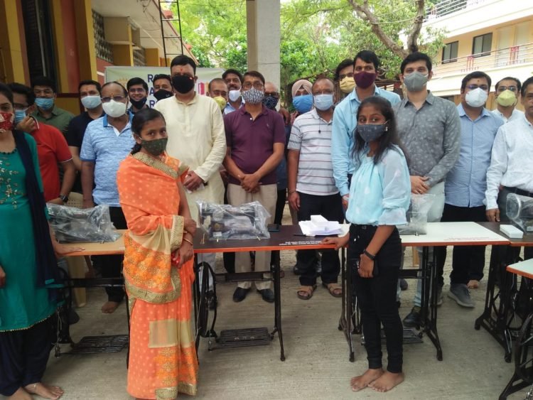 जळगाव (प्रतिनिधी) रोटरी डिस्ट्रिक्ट ३०३० अंतर्गत रोटरी जळगाव रॉयल्सची स्थापना नुकतीच झाली असून रोटरी इंटरनॅशनलतर्फे मान्यता प्रमाणपत्र [क्लब क्रमांक २२२६३२] २१ मे २०२१ रोजी प्राप्त झाले आहे. प्रथम प्रकल्प म्हणून रोटरी जळगाव रॉयल्सतर्फे कोरोनाच्या कालावधीत रोजगार बुडालेल्या व निराधार महिलांना सात शिलाई मशीनचे वाटप नगरसेवक अनंत जोशी यांच्या हस्ते ओंकारेश्वर मंदिराच्या प्रांगणात रविवारी सकाळी करण्यात आले.