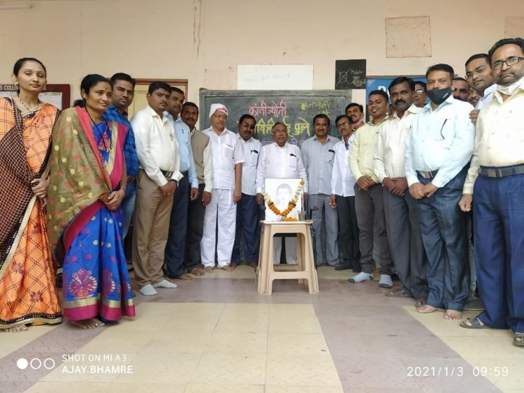 यावेळी संस्थेचे अध्यक्ष नानासाहेब प्रा.डी. डी. पाटील यांच्या हस्ते सावित्रीमाई फुले यांच्या प्रतिमेचे पूजन करण्यात आले. सावित्रीमाई फुले यांनी दगड, शेण, गोटे झेलून सनातनी कर्मठांकडून होणारा अन्याय सहन करत महिलांना शिक्षित केलं. ‘चूल आणि मूल’ या बंधन बेडीतून स्त्रियांना मुक्त करत शिक्षणाचे अविरत कार्य केले. आज ज्या महिला विविध पदावर विराजमान झाल्या आहेत. हे केवळ सावित्रीमाईंच्या त्यागा मुळेचं म्हणून खऱ्या विद्येची देवता सावित्रीबाई यांचा जन्मदिन हा महिला शिक्षण दिन म्हणून साजरा करूया, महिलांनी अंधश्रद्धेला बळी न पडता त्यांच्या स्री मुक्ती आंदोलनाची प्रेरणा घेऊया असे आवाहन करत त्यांनी मनोगत केले. याप्रसंगी जय योगेश्वर माध्यमिक व उच्च माध्यमिक विद्यालय, शांतीनिकेतन प्राथमिक विद्यामंदिर, धनदाई कला व विज्ञान महाविद्यालयातील सर्व प्राध्यापक, शिक्षक, शिक्षकेतर कर्मचारी उपस्थित होते.