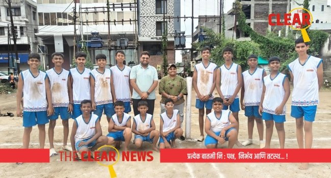 खो-खो मध्ये मनपास्तरावर विजय प्राप्त केलेल्या खेळाडूंसोबत प्रशिक्षक श्वेता कोळी, आकाश धनगर