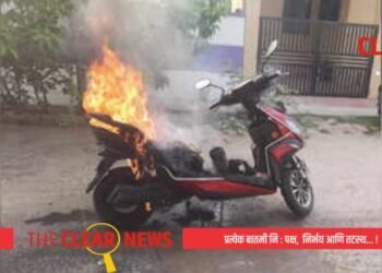 घराच्या कंपाऊंडमध्ये चार्जिंगला लावलेल्या इलेक्ट्रीक बाईकला आग